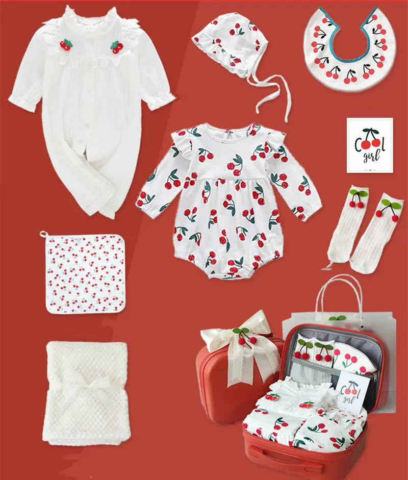 Cherry Print Cotton Baby Onesie Set Gift Box