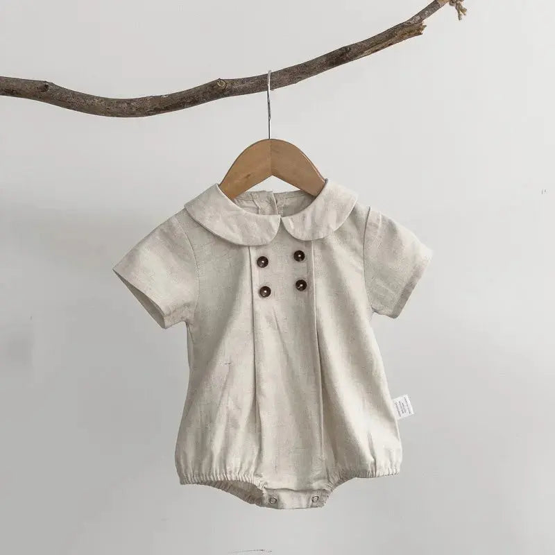 LITTLEGIANT Striped Baby One-Piece – Cotton Linen & Peter Pan Collar - LITTLEGIANT Baby Cloth